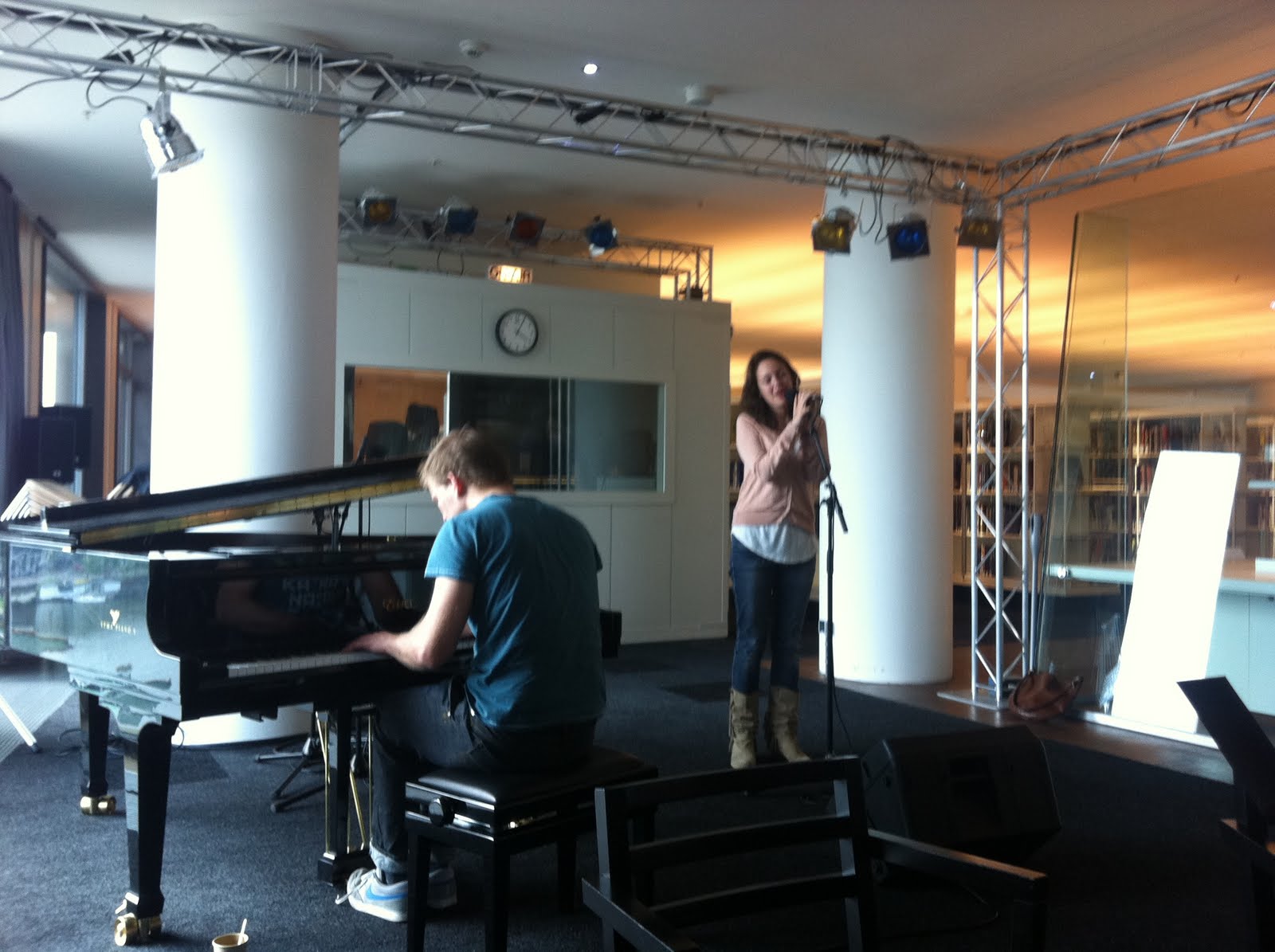 Zondag is de release van hun debuutalbum: ‘Crossing the Rubicon’. FinnSilver is booming als Hollandse Nieuwe in de 3voor12luisterpaal, ze krijgen positieve recensies op alle muzikale websites, zoals ongekend talent en lastfm en mogen meedoen aan de voorrondes van de popronde. Kortom er gebeurt van alles in het leven van deze Amsterdamse band met een internationaal geluid en tintje. Zangeres Fridolijn van Poll en pianist Daan Herweg zijn hier op de vierde verdieping van de OBA.