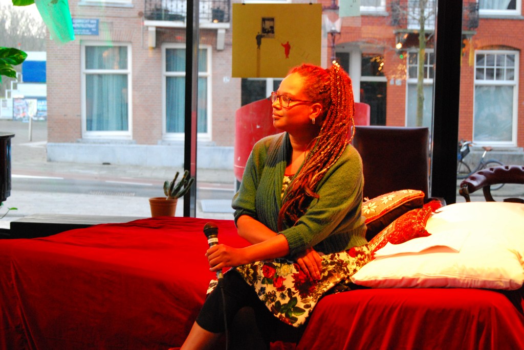 In de foyer van het Volkshotel werden Amsterdammers uitgenodigd op het grote bed om hun intieme liefdesverhalen te delen met het publiek. Deze transparante radiostudio vormde het hart van het programma waarin de presentator gasten uit het hotel, kunstenaars uit de broedplaats en (liefdes)ervaringsdeskundigen uit Amsterdam ontving.