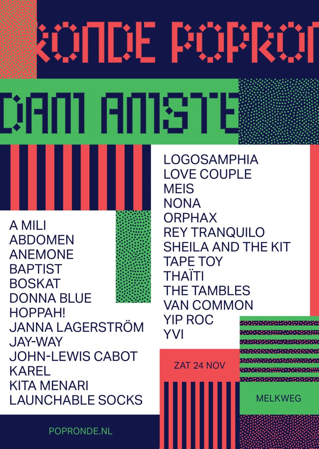 Traditiegetrouw sloott de Popronde haar seizoen af in Amsterdam met een knallend eindfeest, dit jaar voor het eerst in de Melkweg! Op zaterdag 24 november speelden jouw favoriete Popronde acts, na 10 weken touren door heel Nederland, nog één laatste keer onder de Poprondevlag. Een mooie afsluiter van een fantastisch seizoen, waarin de grootste talenten, de nieuwe favorieten van eigen bodem gepresenteerd worden!